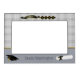 Stylish custom graduate's magnetic frame done in a light gray and white plaid, on the top half and solid gray, on the bottom. Graphics of a black mortarboard, a rolled diploma and a class of banner decorate this great looking graduate's frame. Personalize the name and year. What a great way to show off your son or daughter's graduation photograph and makes a nice gift to the grandparents.