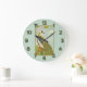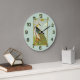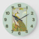 Lovely peacock art on a wall clock with a soft pale teal background. Hang it in the library, den, beach house, or office. This clock would make a unique housewarming or boatwarming (or houseboat warming) gift. Available in two sizes of round clock, or a square clock. Copyright Scarebaby Design.