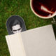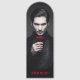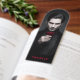 Bookmark featuring a pale, handsome vampire holding a glass of blood and your custom text in a red, ornate, distressed font. Optional text or quote on the back.