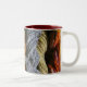 Beautiful handspun and naturally dyed yarn adorns this mug.