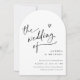 This modern and fun arch-shaped wedding invitation features a trendy handwritten script with a playful heart accent for a stylish, personal touch. The curved silhouette adds a soft, contemporary feel, while “the wedding of” stands out in bold handwriting paired with your names and wedding details in a simple, minimalist layout. Perfect for couples who love a modern design that’s both casual and chic.