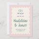 Retro inspired wedding save the date invitation in a charming pastel color palette and a wavy frame, with handwriting style fonts, a cute hearts illustration and "we say yes!" This is a fully customizable save the date template, all colors can be changed in the design tool if you like.