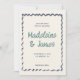 Retro inspired wedding save the date invitation in a charming pastel color palette and a hand drawn quirky wavy frame and handwriting style fonts. This is a fully customizable save the date template, all colors can be changed in the design tool if you like.
