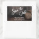 Handwriting Save the Date Brown Wooden Barrel Rectangular Sticker