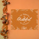 Celebrate the season of gratitude with this beautifully designed Thanksgiving Holiday Card. The warm orange background sets the stage for a handwritten message, "Be Thankful, Be Grateful, & Be Blessed," surrounded by delicate white illustrations of autumn leaves, acorns, and harvest elements. This Holiday Card is perfect for sharing your heartfelt thanks and spreading holiday cheer to loved ones.
