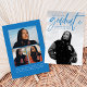 Modern graduation announcement card featuring your graduate's favorite photo on the front with "Graduate" in a blue handwritten script. Personalize the front of the announcement by adding the graduate's name, school name, and graduation year. The trendy graduation announcement reverses to display an additional 3 photos with space for text such as future plans, graduation details, party details, etc. The 4 photo graduation announcement is perfect for both high school and college graduates.