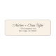Whimsical handwritten return address label on a neutral ecru colored background.