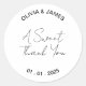 Add a touch of elegance to your wedding celebration with these personalized round white stickers. Featuring the initials of the bride and groom, these stickers are perfect for sealing invitations, decorating favors, or adding a personal touch to any aspect of your wedding. The classic round shape and clean white background provide a sophisticated and timeless look that complements any wedding theme. Customize the stickers with your initials and make every detail of your special day unique.