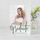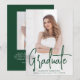 Modern graduation announcement featuring your vertical photo on the front with "Graduate" displayed in a handwritten green script overlay. Personalize the front of the photo graduation announcement with the graduate's name, school name, and graduation year. The simple graduation announcement reverses to display an additional photo with space provided to include the graduate's plans, graduation details, etc. The 2 photo graduation announcement is perfect for both high school and college graduations!