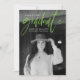 Modern graduation announcement card featuring your graduate's favorite photo on the front with "Graduate" in a lime green handwritten script. Personalize the front of the announcement by adding the graduate's name, school name, and graduation year. The trendy graduation announcement reverses to display an additional 3 photos with space for text such as future plans, graduation details, party details, etc. The 4 photo graduation announcement is perfect for both high school and college graduates.