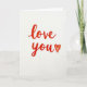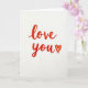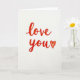 Designed with a simple white background, this card keeps all the focus on a short, sweet message. In the center, the words “love you” are written in thick red letters that look hand-drawn, with a slightly rough, crayon-like texture. The red color shifts a bit from deeper red to a touch of orange in places, which makes the letters feel warm and lively. The writing has smooth, flowing lines, and the small uneven spots make it feel real and human. A small red heart sits right after the words, matching the same textured look and slightly uneven edges. There are no other pictures or objects, so the message feels direct and easy to read 💘❤️.