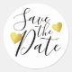 handwritten Save the Date with gold hearts . wedd Classic Round Sticker
