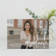 Modern graduation announcement featuring your horizontal photo on the front with "graduate" displayed in a white handwritten script overlay. Personalize the front of the photo graduation announcement with the graduate's name, school name, and graduation year. The simple graduation announcement reverses to display an additional photo with space provided to include the graduate's future plans, graduation details, etc. The 2 photo graduation announcement is perfect for both high school and college graduations!
