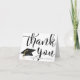 Custom graduation thank-you note cards that can be personalized with the graduate's name and class year on the front along with a full-bleed over-sized THANK YOU title with a black and gold graduation cap design. The card inside offers the option to pre-print your thank-you message or opt to delete the sample text to leave the inside blank for handwriting notes of appreciation. ASSISTANCE: For help with design modification or personalization, color change, resizing, transferring the design to another product or if you would like coordinating items, contact the designer BEFORE ORDERING via the Zazzle Chat MESSAGE tab or email makeitaboutyoustore@gmail.com.