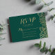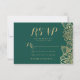 A modern elegant handwritten script lettering dark green and gold hand-painted floral mandala theme wedding RSVP Cards invitations.
