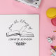 This lovely library book stamp features an elegant round form with the ´´from the library of´´ text in handwritten script and your custom name in simple modern typography with a hand-drawn leafy branch below. In the center, there is a lovely illustration of an open book. Customize it via the ´´Personalize´´ button.