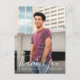 a script overlay photo card design with a custom photo. Feel free to personalize the image and thank you message at the back.