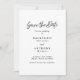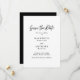 Make a striking first impression with this modern black-and-white Save the Date card—crafted for couples who love clean design with a personal touch. The front showcases a handwritten “Save the Date” script alongside your names and key event details, offering a warm yet sophisticated preview of your big day.