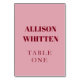 Handwritten Script Pink & Red Custom Wedding Table Number