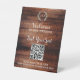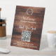 Handwritten script QR code rustic wedding seating Pedestal Sign