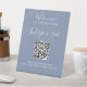 Elegant Handwritten script QR code wedding seating pedestal sign.