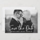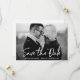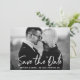 Trendy Modern Handwritten Script Save The Date Engagement Announcement Black and White Photo Card