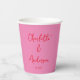 Handwritten Script Whimsy Pink Red Custom Wedding Paper Cups