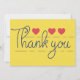 Thank you in handwritten font with red hearts on yellow background
