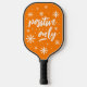 Distract (and get a rise out of) your opponent with this vividly colorful pickleball paddle, which features a simple but upbeat "positive vibes only" message with stylized cheery flowers in the background. Reverse shows identical design on a solid black background.
