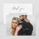 Wedding Thank You Cards that have a photo on the front and back. The Thank you cards contain a modern white and Black hand lettered cursive script typography that are elegant, simple and modern to use after you minimalist simple wedding day celebration.