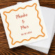 Handwritten Whimsical Wavy Border 70s Wedding Napkins