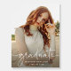 Modern graduation sign featuring the graduate's vertical photo with "graduate" displayed in a handwritten white script overlay with swashes on each end. Personalize the photo graduation sign with the graduate's name and graduation year. The design provides an optional dark gradient. The white script graduation sign is perfect for celebrating both high school and college graduates.