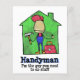 This fully customizable 2-sided, zany and colorful flyer is the perfect way to promote your carpentry, construction, handy man service. Its bright, unique artwork is witty and completely charming and sure to added to refrigerators everywhere. Features a green house with a work man in overalls holding a hammer and toolbox. Perfect way to promote your own business and makes a perfect gift for someone you may know that wants to grow their business or earn extra money.