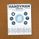 A professional handyman services flyer with tear-off tabs in light & bold blue color. A clean & modern design with a central home icon, surrounded by icons representing different repair tools including water drop, electrical symbol, paint roller, handsaw, hammer and wrench.