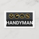 A grey and black layered cover is encapsulated by a white rectangular frame. Over at the top lies an array of gold handyman icons with the business name "HANDYMAN" at the base; You can change the captions to suit your own service needs.