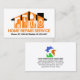 Each tool represents some of the service that you might offer e.g. The hammer-tape can be for remodeling works, the roller brush-ladder for home painting, the water drop-wrench for plumbing works and the bulb for electrical service. Below all this is the business name "HOME REPAIR SERVICE" and the contact details.