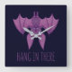 Hang In There Wacky Vampire Bat Square Wall Clock