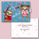Two adorable little sloths are dressed in their Valentine Day attire while they climb on tree limbs decorated with pink hearts. The images are placed on a sky blue background with floating hearts. The white text says "Valentine". The inside of the card has the same heart background pattern with two custom text fields.