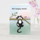 A cute card to let someone know you are thinking about them. A funny black and white cat is hanging off of a tree branch. The background has a watercolor look to enhance the sweet care. When you are just hanging around thinking of someone, this is the perfect card to let them know!