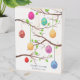 Lovely Spring tree branches with gentle green leaves and hanging colorful Easter eggs.