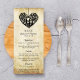 These wedding menu cards feature a romantic hanging tree, and soon to be husband and wife, which is carved in the shape of a heart.