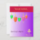 A beautiful invitation in shaded purple with five color Chinese hanging lanterns across the top, and in the corner the Chinese calligraphy for the word Peace in a soft, butter yellow. This design makes an outstanding New Year's invitation, graduation party announcement, or just about anything! Add your own text back and front, in any font. Play with colors on the back, too. We've placed this on a bright, Chinese red background, but see what you come up with.