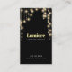 Gold string lights hang down from the top of this versatile striking black business card. Great for a lighting designer, event planner, or even a beauty salon. Available with matching products.