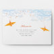 An origami orange paper cranes hanging on sky blue bare branches with tangerine berries against a white background wedding envelope.