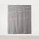 This modern zen wedding photo backdrop photo booth tapestry design features an origami purple paper crane hanging from stylish minimalist strings of fairy lights against a dark grey background.