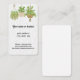 Three hanging plants with lush green leaves in planters hang from the top of the card. There is a white textured background.
