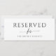 Simple Romantic Wedding Hanging Reserved Sign (Black): Hang these wedding signs from chairs, or simply place flat on a chair seat. This wedding reserved sign features elegant typography in black and white. Change the colors and fonts to anything you like! Punch holes in the top on each side and hang from wedding chairs or pew...or simply lean on a chair place along your table decor.