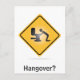 Funny postcard with a yellow warning sign for a hangover with an icon throwing up on it on a white background with the text: 'Hangover'.
