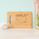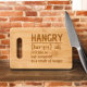 Hangry Irritable or bad tempered because of hunger funny engraved wooden chopping board from Ricaso. Available in various thicknesses and with small or full size printing. Perfect for your kitchen and as gifts for those that suffer from being hangry.