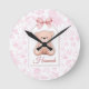 Hannah | Custom Pink Teddy Bear Nursery Design Round Clock